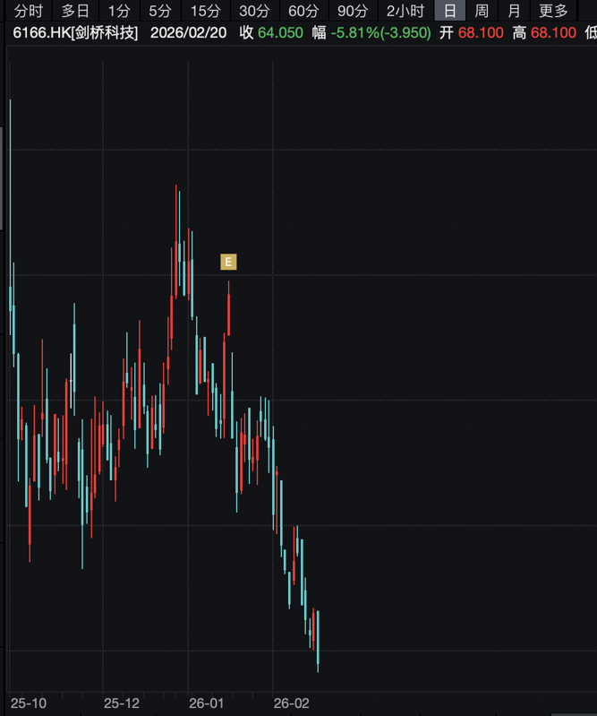 剑桥科技收跌5.81%,报64.05港元/股。
