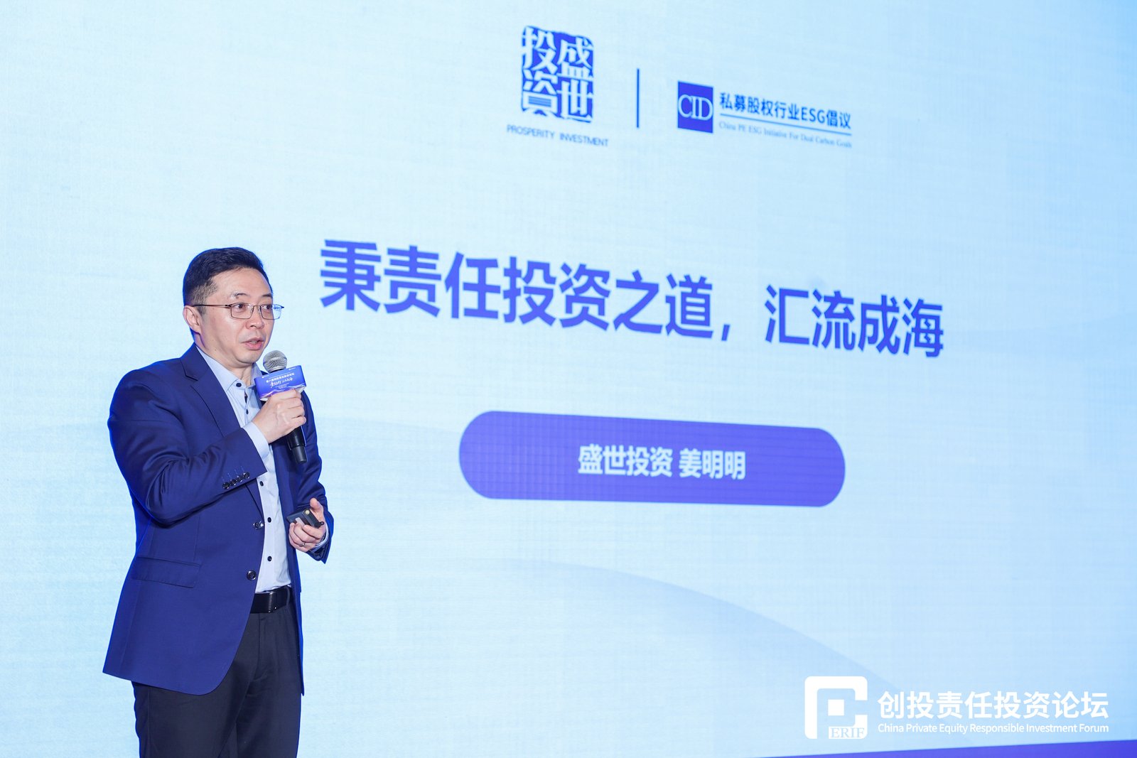 私募股权行业ESG倡议(CID)联席主席、盛世投资董事长姜明明做致辞分享。他表示,自2023年私募股权行业ESG倡议(CID)发起以来,始终致力于凝聚行业力量,共建可持续投资生态,取得了丰富成果。目前CID已汇聚超百家机构深度参与全球可持续对话,并连续开展能力建设,推动ESG成为价值创造的核心驱动力。同时,与联合国妇女署中国办公室达成五年战略合作,并发布了行业内首份性别视角投资白皮书,积极开发性别视角投资工具包,助力女性跨越鸿沟,释放多元价值。CID连续两年发布《中国私募股权 ESG 投资实践白皮书》,调研数百家机构,既展现了行业 ESG 投资新生态,也体现行业各家机构服务国家战略、推动高质量发展的担当。未来,CID与将继续与各方携手,为中国乃至全球的可持续金融发展贡献智慧与力量。同时,盛世投资始终积极参与行业文化建设与标准建设,着力探索ESG本土化实践,助力行业ESG投资生态圈建设。