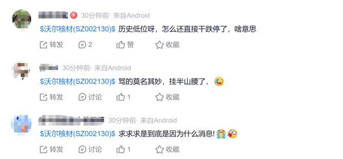 对此,大量股民在社交平台上纷纷追问跌停原因。