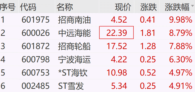 3月2日上午,航运股同步走高,招商南油涨停,中远海能、招商轮船、宁波海运等跟涨。