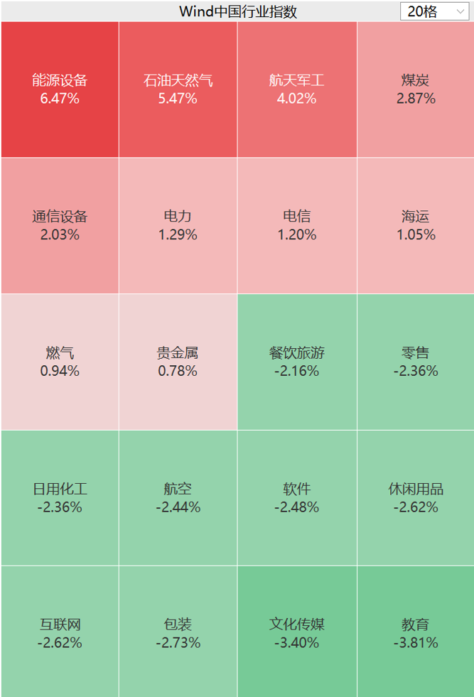 盘面上,上午能源设备、石油天然气、航天军工、煤炭等板块走强,军工信息化、光模块、光通信、深地经济等方向活跃;教育、传媒、软件、AI应用等板块不振,稳定币、虚拟人、加密货币等概念股回调。