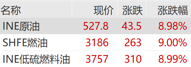 期货市场上,能源品领涨,燃油、低硫燃料油、原油主力合约纷纷走强。