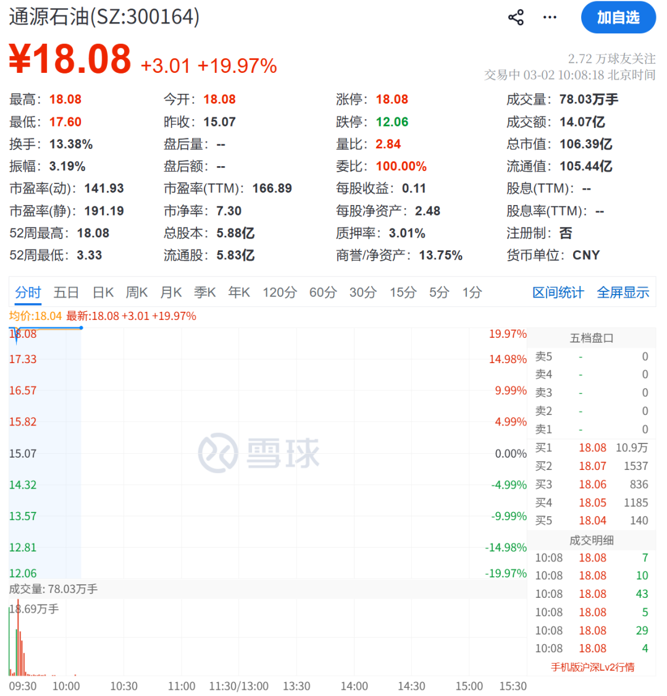 3月2日,石油石化板块开盘暴涨,油气开采、天然气等方向活跃。个股方面,通源石油开盘20cm涨停,泰山石油、中海油服、准油股份等十余股纷纷涨停。