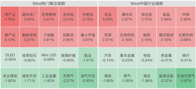 【导读】农业板块大幅上涨,大科技延续强势,创新药、电网设备板块走强;油气股延续回调