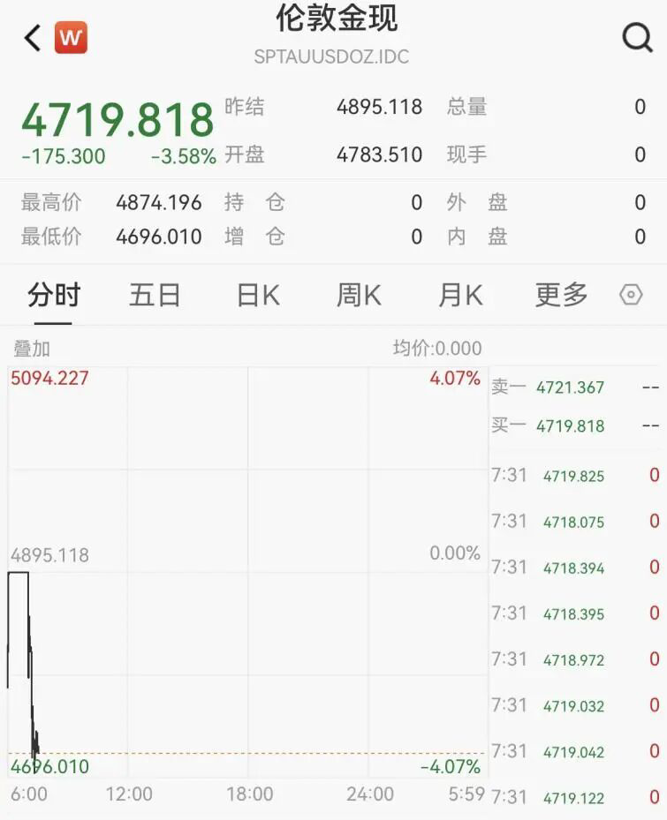 【导读】周一早间开盘现货黄金一度失守4700美元关口,现货白银跌破79美元