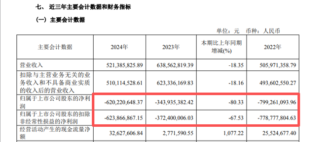 2022年至2024年,ST中珠的归母净利润、扣非后净利润均为负值。