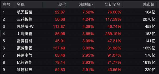 航天智装涨超7%,思特威-W、上海洗霸、虹软科技、雷赛智能等跟涨。