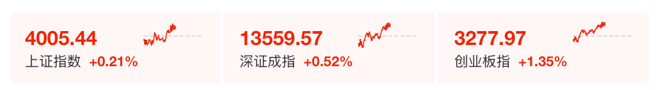 截至午间收盘,沪指报4005.44点,涨0.21%;深证成指涨0.52%,创业板指涨1.35%。