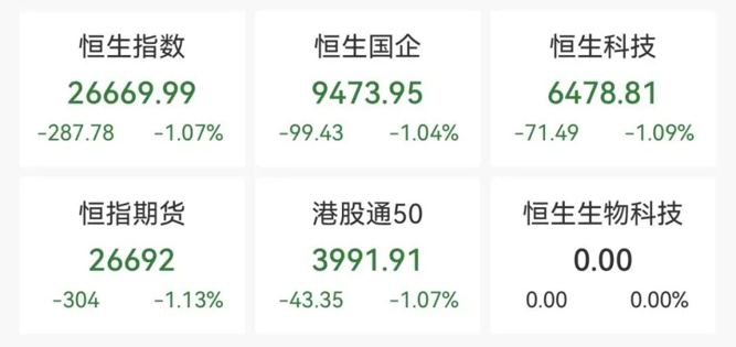 【导读】港股市场震荡调整,三大指数均跌超1%