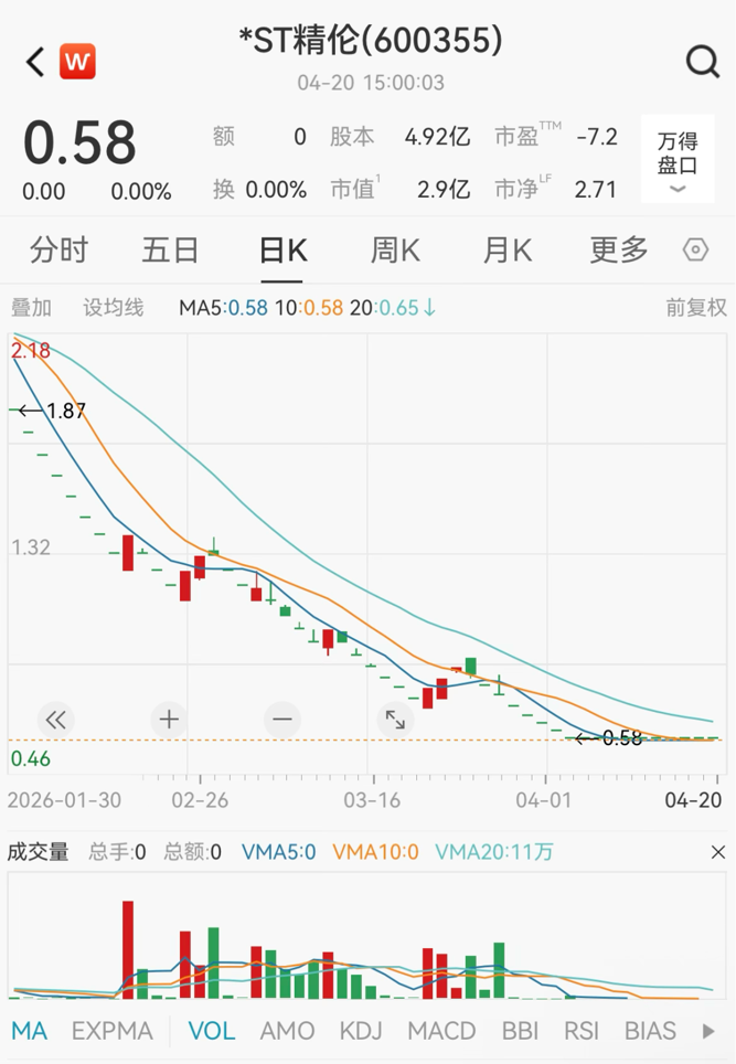 【导读】*ST精伦股票终止上市,于4月27日正式摘牌
