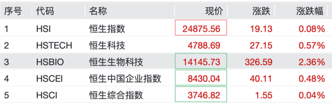 港股市场同样上涨。截至发稿,恒生指数微涨0.08%,恒生科技涨0.57%,恒生生物科技大涨2.36%。个股方面,云顶新耀大涨11%,石药集团涨超7%,亚盛医药、先生药业、信达生物、百济神州等纷纷上涨。