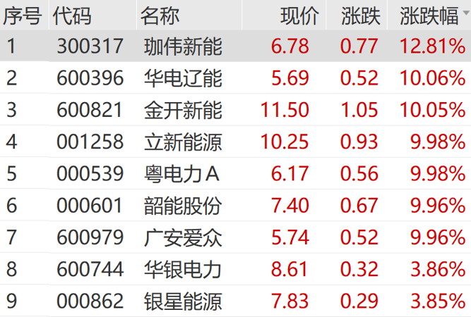 石油、煤炭板块走强电力股直线拉升