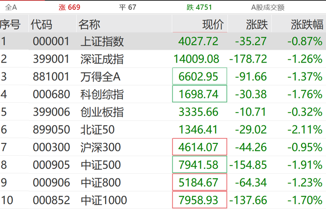 【导读】A股市场低开震荡,煤炭、石油石化板块走强,电力股直线拉升;有色金属、钢铁板块走低3月19日,A股市场早间低开,上证指数跌0.85%,深证成指跌1.3%,创业板指跌1.04%,科创综指跌1.69%。随后,市场持续震荡调整。截至发稿,A股主要指数集体飘绿,超4700只个股下跌。盘面上,石油石化、煤炭、电力等板块走强,算力租赁、水电、火电等概念股活跃,有色金属、海运、半导体、钢铁等板块下跌。港股三大指数集体低开,恒生指数跌1.82%,恒生科技指数跌2.1%,恒生国企指数跌1.62%。截至发稿,三大指数跌幅有所收窄,但仍超1%。
