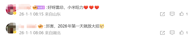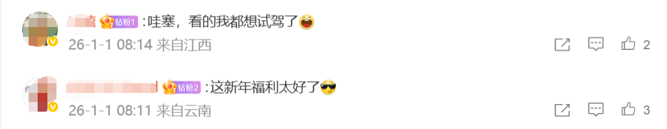 对此,大量网友纷纷留言称“太给力了”“2026年第一天就放大招”。