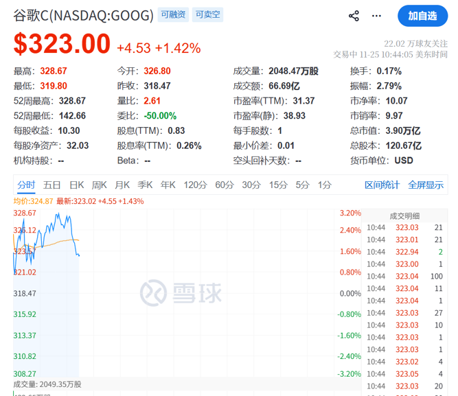 谷歌股价一度上涨近3%,在市场预期Meta计划斥资数十亿美元采购谷歌AI芯片的报道推动下,这家搜索巨头距离4万亿美元市值又近了一步。英伟达股价则下跌约6%。超微半导体(AMD)和甲骨文(Oracle)股价同样走低。