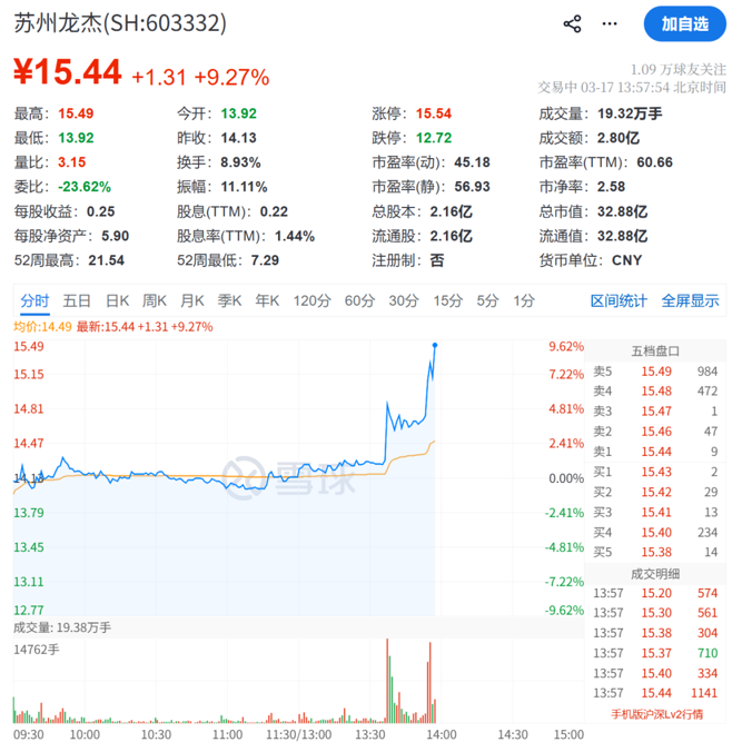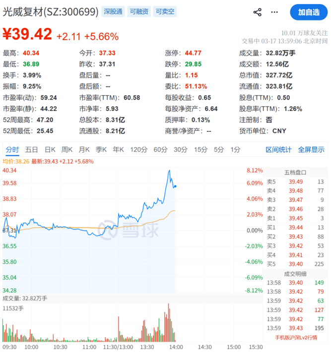 苏州龙杰、光威复材、吉林化纤等多股走强。