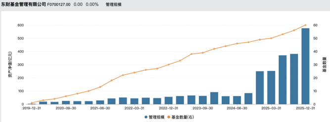 在固收业务发展带动下,东财基金过去一年规模大幅增长。Wind数据显示,截至去年年末,东财基金的公募基金管理规模为576亿元,相比2024年年末增长了130.4%。