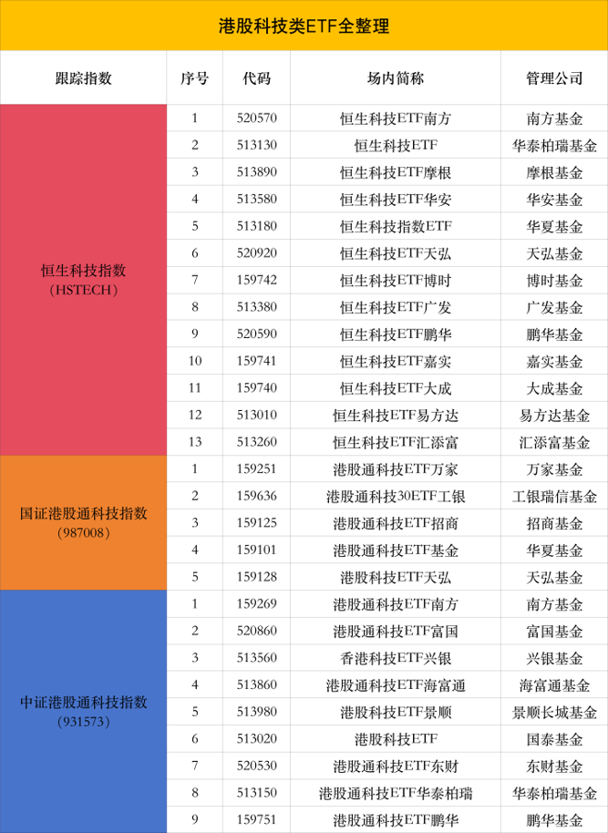 以下是“不持有”泡泡玛特的热门港股科技ETF清单: