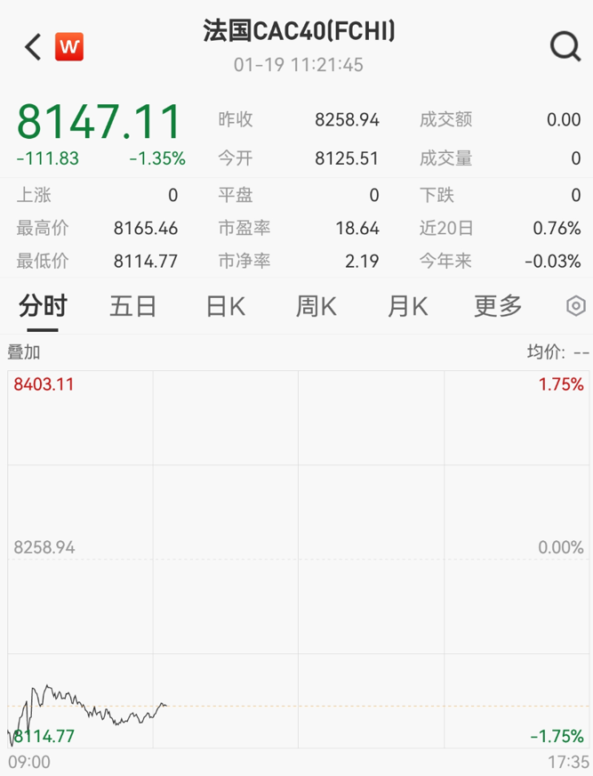 今日,欧洲市场开盘走低,法国CAC40指数盘中跌超1.7%,英国富时100指数跌0.6%,德国DAX指数跌1.5%,意大利富时MIB指数跌超1.8%。