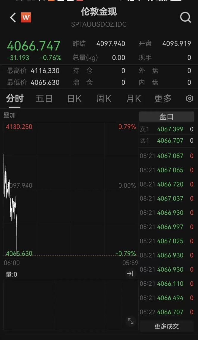 不过,10月23日开盘,国际金价震荡走低。截至发稿,现货黄金直线跳水,现报4066.747美元/盎司,跌幅达0.76%。