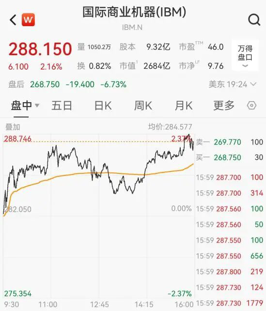 另外,IBM也发布了季度财报。IBM三季度营收为163.3亿美元,超市场预期。但其关键部门Red Hat增长不及预期,引发了投资者担忧。截至发稿,IBM盘后跌超6%。