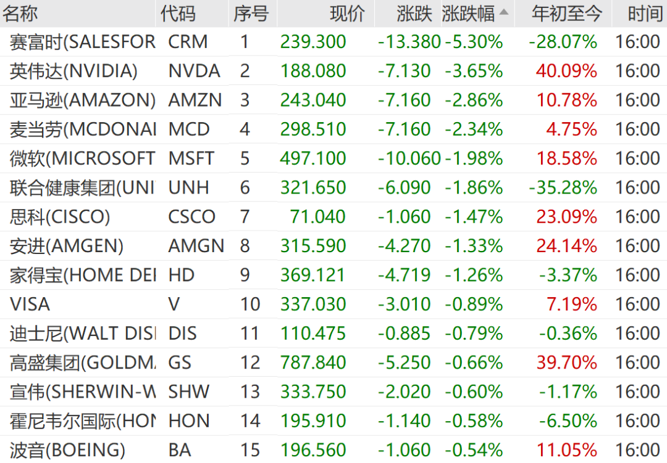 赛富时跌5.30%,英伟达跌3.65%,亚马逊跌2.86%,领跌道指。