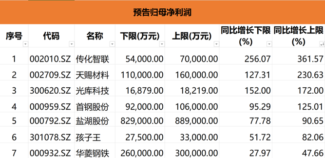 据统计,截至2025年12月31日,共有10家公司发布了2025年度业绩预告,且全部预增。除了上述7家公司外,剩余3家分别是立讯精密、三花智控、紫金矿业。