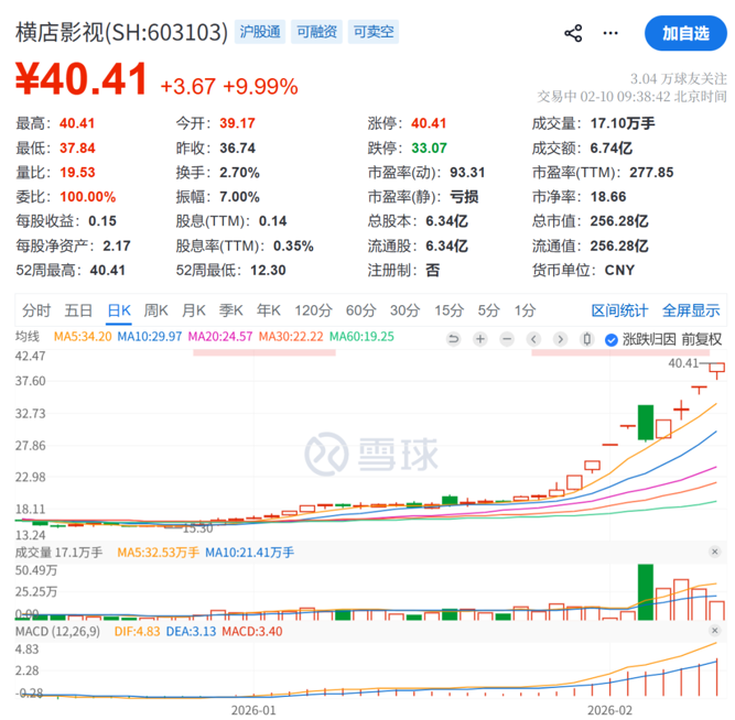 2月10日上午,传媒板块延续昨日热度,捷成股份、荣信文化、上海电影、风语筑、欢瑞世纪、博纳影业、掌阅科技等纷纷2连板,横店影视9日7板。