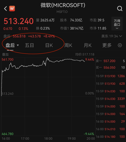 微软公布第四财季收益和营收好于预期后,股价在周三盘后大涨,一度突破550美元/股,市值达到约4.1万亿美元,使其成为继英伟达之后第二家突破4万亿美元市值的公司。