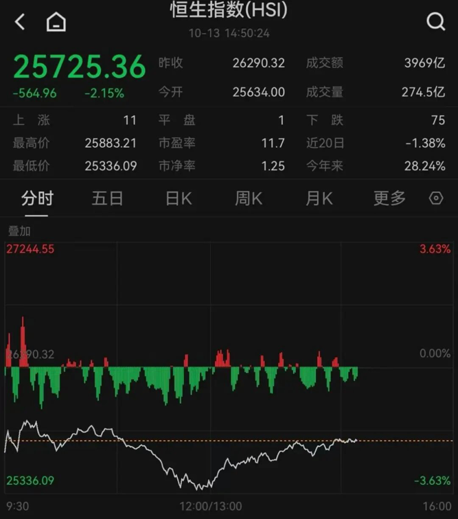 10月13日,港股午盘跌幅收窄,三大指数仍整体走低。金融股耀才证券逆市拉升,盘中涨幅达37.39%。