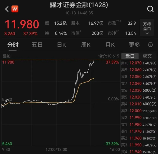 今日,港股市场不出意外整体走低。耀才证券逆市拉升,盘中涨超30%!