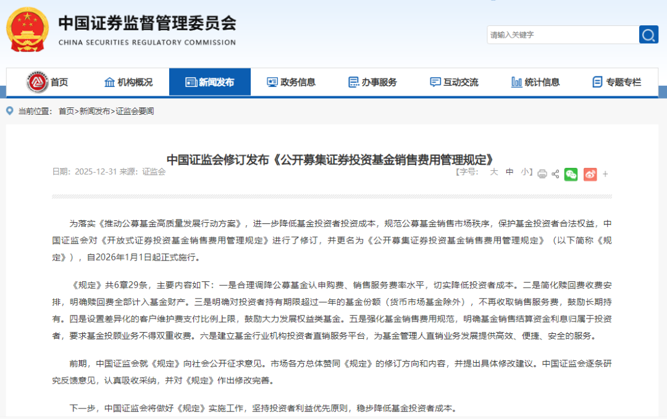 2025年12月31日,《公开募集证券投资基金销售费用管理规定》(以下简称《规定》)重磅修订并正式发布,自2026年1月1日起实施。