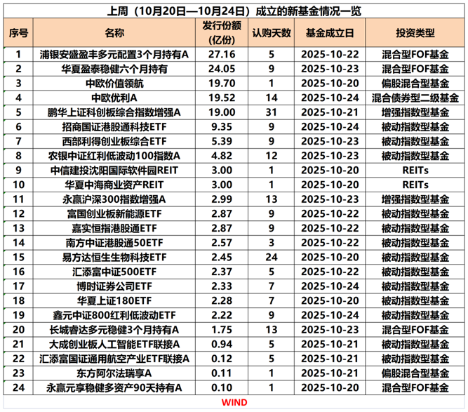 从上周(10月20日—10月24日)新基金发行情况来看,多只FOF产品受资金青睐。