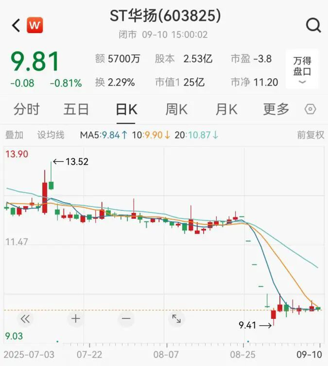 截至9月10日收盘,ST华扬股价报9.81元/股,最新市值为25亿元,最新股东户数为3.12万户。