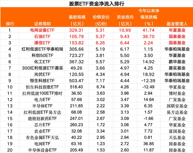 数据显示,头部基金公司旗下部分ETF净流入步伐持续。