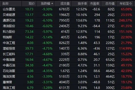 油气股大幅回调,洲际油气一度触及跌停,山东墨龙逼近跌停,贝肯能源、通源石油、准油股份等跟跌。