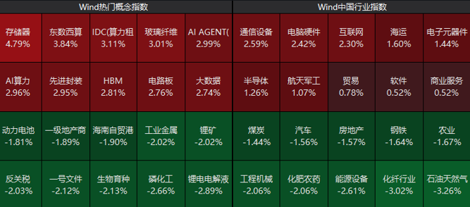 从板块上看,通信设备板块多股涨停,AI Agent指数盘中持续走高,电子元器件、航天军工、互联网等板块涨幅居前;油气股集体走低,化工、工程机械、农业板块震荡调整。