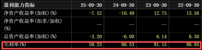 除了营收和净利润,从体现盈利能力的核心指标毛利率来看,一品红今年前三季度的毛利率为59.23%,而去年三季报为66.53%,下降了约7个百分点。2022年和2023年的三季报显示,一品红毛利率分别高达86.85%和81.15%。