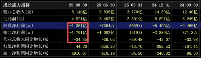 10月29日晚,一品红公告,公司2025年前三季度实现营业收入8.14亿元,同比下降34.35%;实现归属于上市公司股东的净利润-1.36亿元,扣非净利润则为-1.79亿元,亏损分别比中报扩大六千多万和近八千万元。