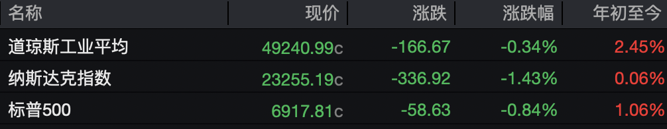 隔夜美股,受软件股抛售潮和美伊对峙升温影响,大型科技股走弱,三大指数全线走低。纳斯达克指数近乎跌去年内涨幅