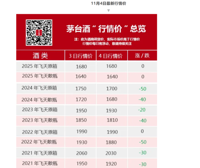 “从长期发展角度来看,飞天茅台价格近期下跌,反映了白酒消费正回归理性,让更多消费者能以更亲民的价格品尝到优质产品,同时也推动了行业向健康消费导向转变。客观地说,当下需求不足的情况下,价格变化有助于挤压此前市场存在的价格泡沫和投机水分,促使茅台从过去的‘投资属性’更多地向‘饮用属性’回归,长远看有利于品牌与真实消费者建立更稳固的联系。”中国酒业智库专家、分析师蔡学飞于11月4日接受记者采访时表示,从行业角度来看,价格调整是市场供需关系的自然反馈,也能加速行业库存优化与渠道效率提升,为白酒市场的长期稳健发展创造更扎实的基础。