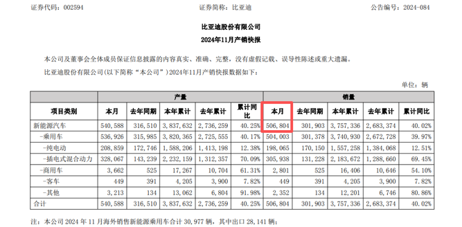 回顾2024年全年,比亚迪自10月开始,连续三个月的月度销量均超50万辆。
