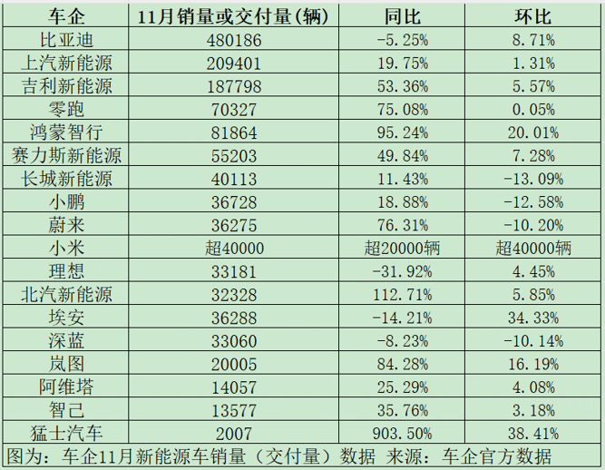 【导读】车企11月“翘尾”行情降温,比亚迪月度销量仍未超50万辆