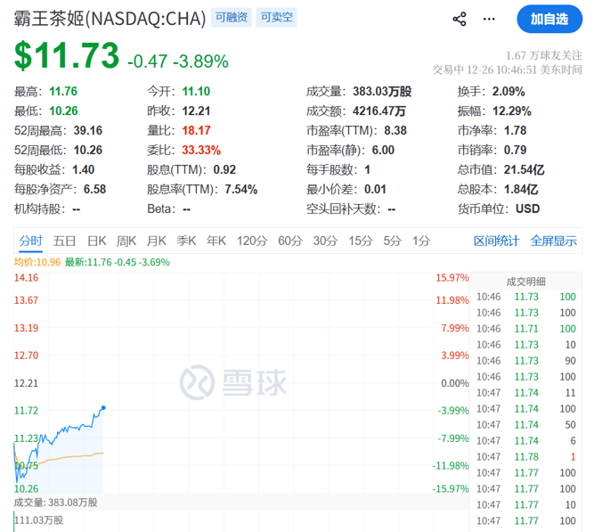 个股方面,霸王茶姬一度暴跌超过10%,随后跌幅不断收窄。12月26日消息,今日,话题词“霸王茶姬 咖啡因”登上热搜,引发广泛讨论,有不少网友表示喝完之后会睡不着,还有网友曾表示喝完会心悸。