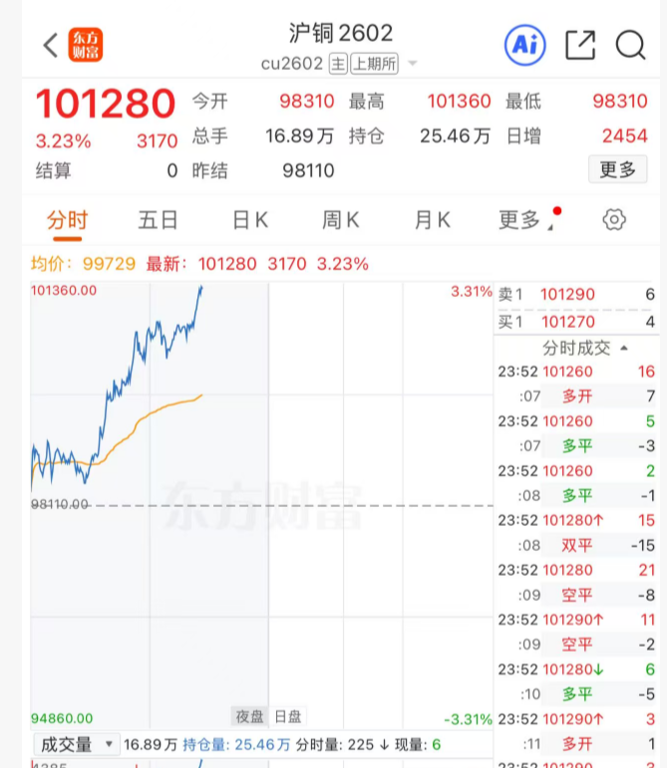 国内市场,上海期货交易所的铜期货价格首次站上每吨10万元人民币关口。纽约商品交易所(COMEX)的铜期货价格暴涨超5%,创下今年7月铜市出现史无前例逼空行情后的新高。