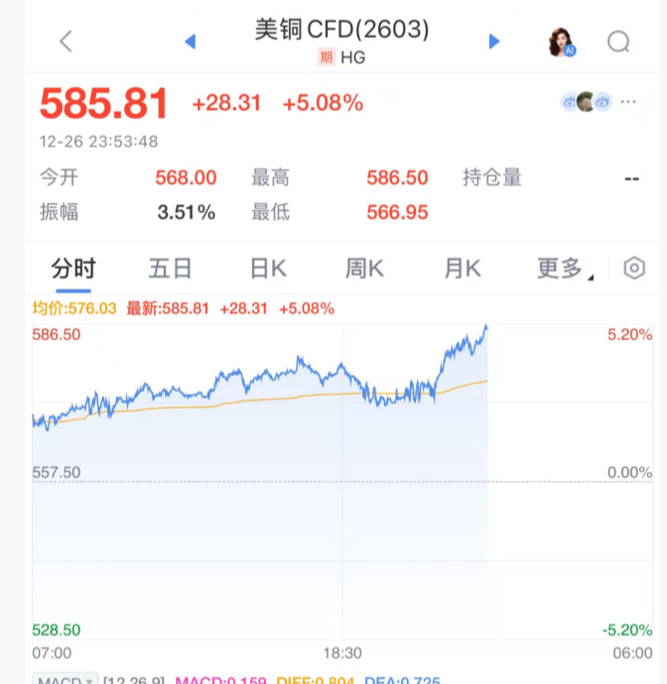 周五铜价的这一轮再度上冲,发生在贵金属同步飙升之际:黄金、白银在年末强势行情中齐创纪录高位,现货钯金日内涨幅扩大至10%。这波“年底冲刺”行情主导了全球大宗商品市场。
