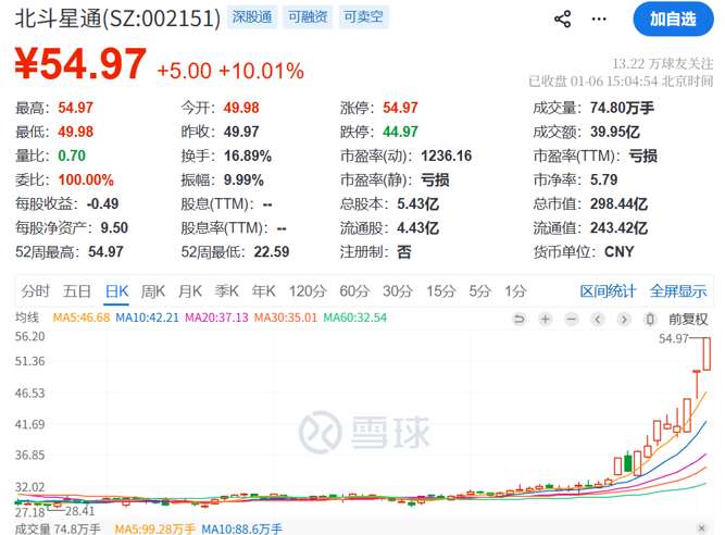 北斗星通公告称,公司股票交易价格连续3个交易日收盘价格涨幅偏离值累计超过20%,属于股票交易异常波动情形。公司留意到近期市场对于商业航天概念股的关注度颇高,公司主营业务为卫星导航芯片、模组、天线、数据服务,下游应用场景包括测量测绘、智能驾驶、智慧农业、割草机器人、无人机等,商业航天仅为公司产品和服务的应用场景之一,请投资者注意风险。