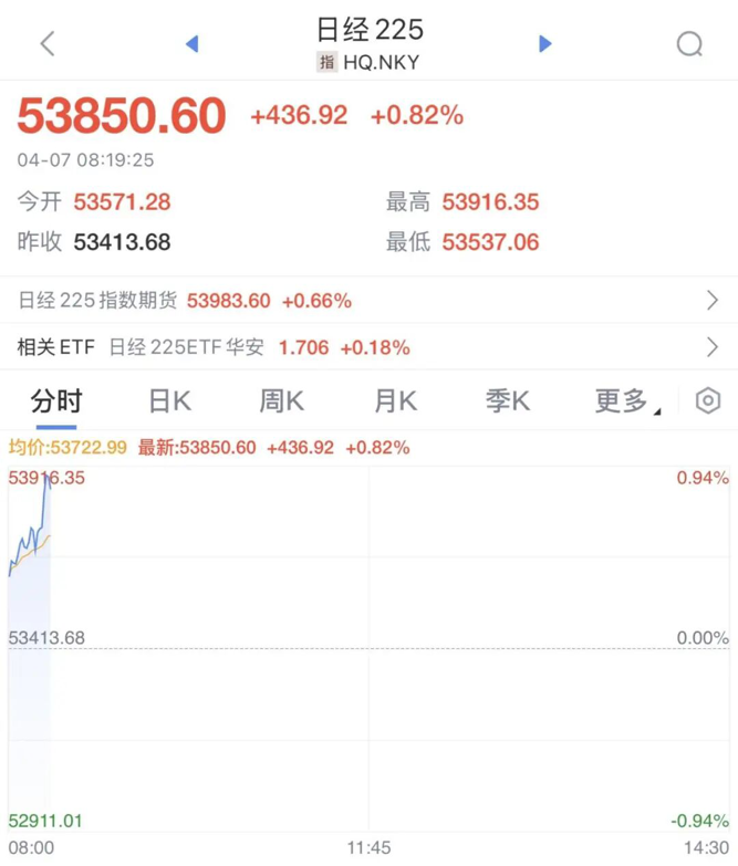 日本股市高开高走,日经225指数涨0.82%,最新报53850.6点。日本东证指数上涨1%,至3681.40点。