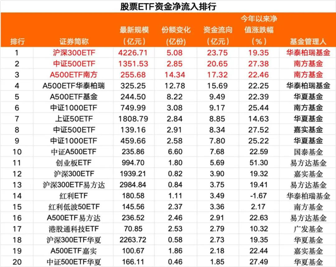 数据显示,头部基金公司旗下部分ETF净流入步伐持续。