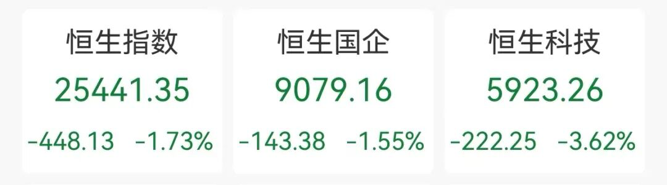 10月14日,香港三大股指全线下跌。香港恒生指数跌1.73%,报25441.35点;恒生科技指数跌3.62%,报5923.26点,均连跌7日;恒生中国企业指数跌1.55%,报9079.16点。大市成交3989.1亿港元。南向资金净买入86.03亿港元。